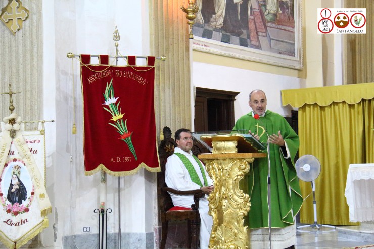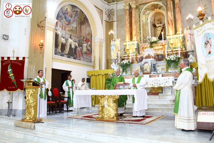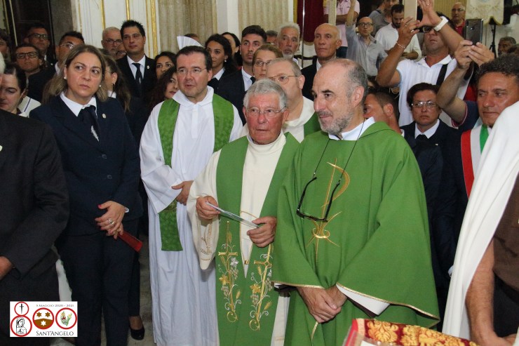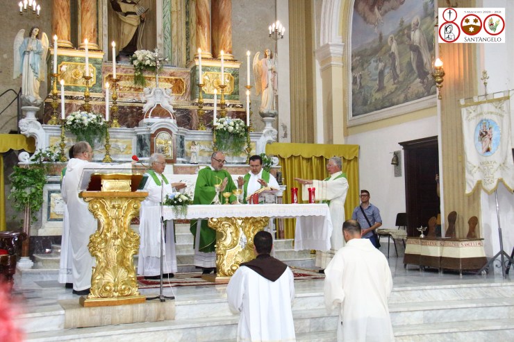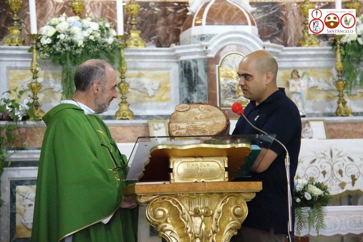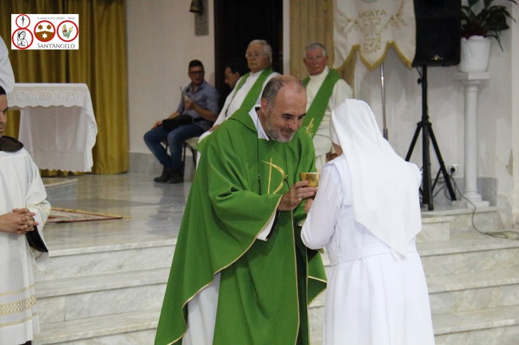 Domenica 4 Agosto 2019, nel contesto dell’anno di preparazione all’Ottavo Centenario del Martirio di Sant’Angelo voluto a livello Diocesano dall’Ordinario di Agrigento, l’Arcivescovo Metropolita Sua Eminenza il Sig. Cardinale Francesco Montenegro, il Priore Generale dei Carmelitani, il Rev.mo P. Fernando Millan Romeral O.Carm. si è recato assieme al Priore della Provincia Italiana dei Carmelitani il M.R.P. Roberto Toni O.Carm. e a Fra Alfredo Pisana O.Carm. come responsabile delle vocazioni e della pastorale giovanile, in visita al Santuario Diocesano di Sant’Angelo a Licata (AG). Il Priore Generale ed il Priore Provinciale hanno visitato la città e alle ore 20:00 presso il Santuario si è celebrata una Santa Messa Solenne alla presenza tra gli altri di alcuni sacerdoti provenienti dalla vicina comunità di Delia (CL). Alla Santa Messa animata dal Terz’Ordine Carmelitano di Licata, erano presenti le autorità cittadine con in testa il Vicesindaco, rappresentanze dei T.O.C. di Palermo e Palma di Montechiaro (AG), le confraternite cittadine e le associazioni Angelane: “Pro Sant’Angelo”, “Portatori di Oltreponte” e “Vivere Licata”. Prima della benedizione si è proceduto alla consegna di un dono al Priore riguardante un tronco in legno con incisione di una xilografia riproducente “Sant’Angelo in gloria sulla Città di Licata”. In modalità del tutto straordinaria, vista la presenza del Priore Generale e a conclusione della sua ultima visita in Sicilia in attesa del Capitolo rielettivo dell’Ordine è stata aperta la cappella del Santo chiusa durante l’anno dalle tre chiavi e consentito al Priore Generale di effettuare un omaggio floreale e sostare in preghiera davanti alle reliquie del Padre dell’Ordine. La visita del Priore Generale in Sicilia è poi proseguita il giorno seguente con una visita in episcopio ad Agrigento al Cardinale Montenegro e la successiva tappa a Trapani in festa per l’altro Padre dell’Ordine, Sant’Alberto.