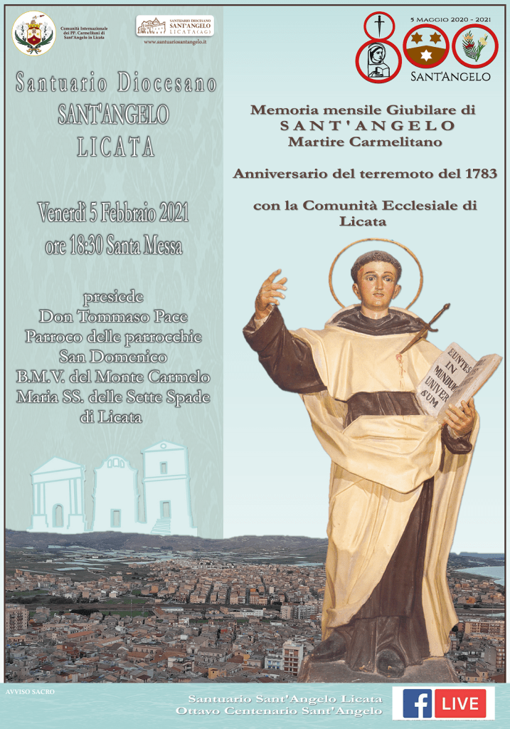 alle ore 18:30 dal Santuario di Sant’Angelo di Licata