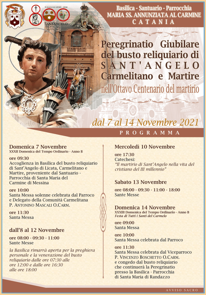 Accoglienza in Basilica del busto reliquiario di Sant’Angelo di Licata, Carmelitano e Martire, proveniente dal Santuario – Parrocchia di Santa Maria del Carmine di Messina