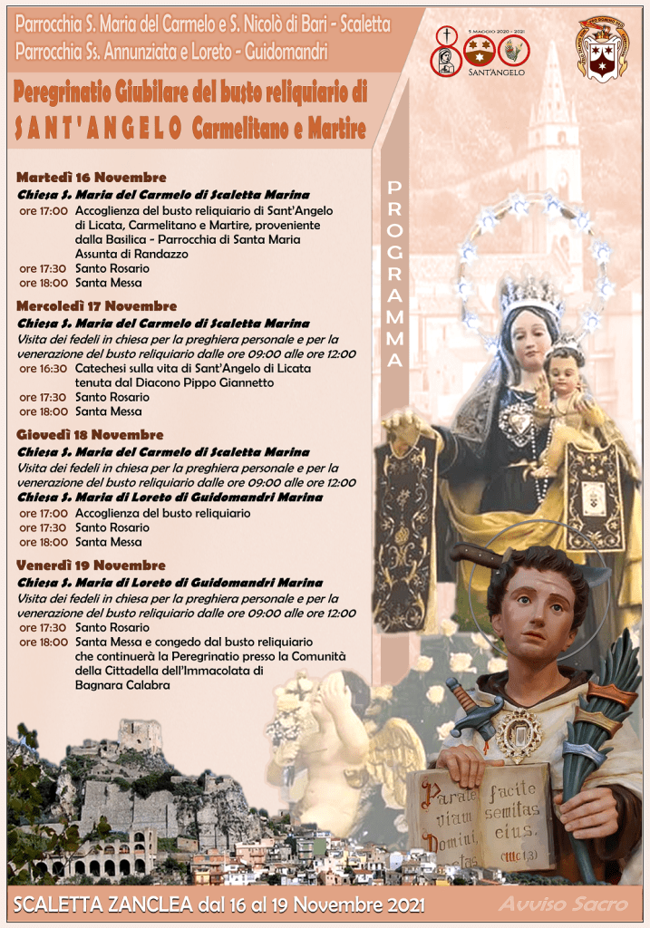 ore 17:00 Accoglienza del busto reliquiario di Sant’Angelo di Licata, Carmelitano e Martire, proveniente dalla Basilica – Parrocchia di Santa Maria Assunta di Randazzo